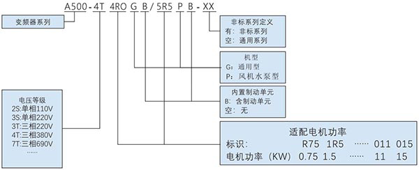| A500-3T5R5GB | 5.5KW | A500-4T7R5GB/011PB | 7.5KW | ||